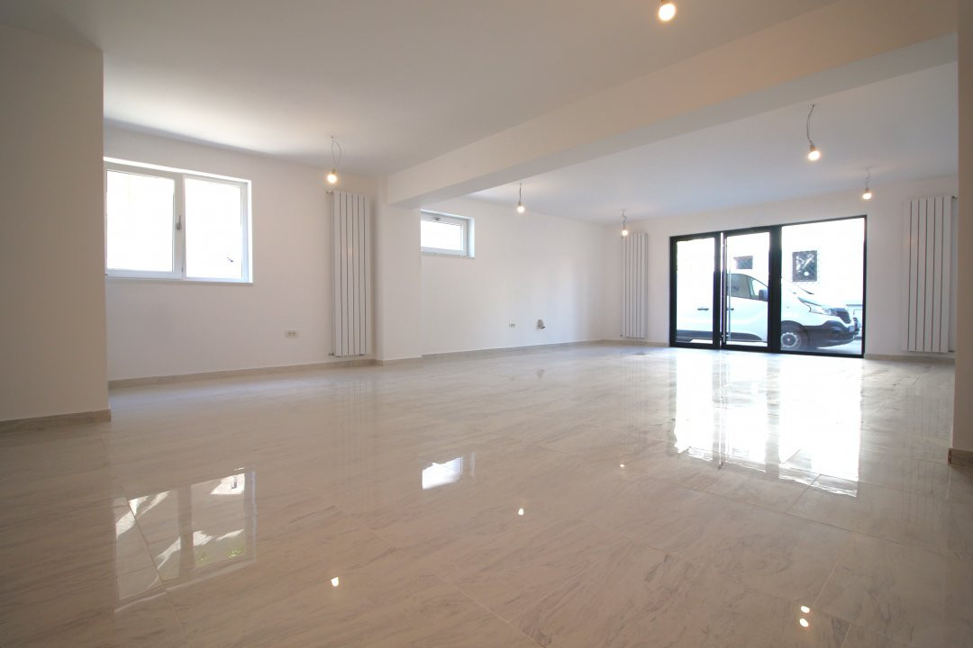Spatiu comercial stradal situat in cladire renovata integral in 2022. Interior finisat modern, open space 55 mp si total util 67,5 mp, cu instalatii noi, centrala proprie, curent trifazic, grup sanitar si spatiu pentru depozitare.